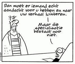 Annnemieke Schrijver vertelt in haar column ook over een psychiater die ze eens heeft geïnterviewd. Hij vertelde aan Annemieke over de genezing van een van zijn patiënten, een jonge man met psychoses. Na zijn genezing had deze zijn medicijnen weggegooid. Annemieke vroeg aan de psychiater hoe het mogelijk was dat deze jonge man van zijn psychoses bevrijd was. Zijn antwoord luidde: Omdat ik de mens in hem aansprak en niet zijn psychoses.